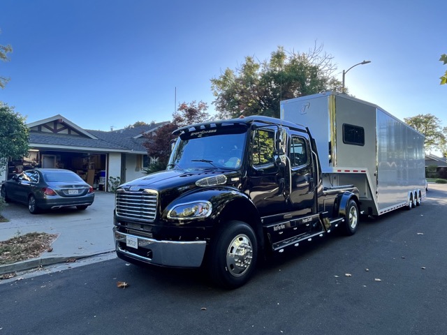 This is an exceptionally clean 1 owner 2022 Freightliner SportChassis powered by the reliable Detroit Diesel – DD13 engine paired with the legendary Allison 6-speed push-button automatic transmission. With just 36,000 verified original highway miles. This factory SportChassis conversion is STUNNING and in like new condition and represents one of the nicest examples you’ll find on the market today. There are plenty of imitators out there, but the is the true Sportchassis converted at their factory in Clinton Oklahoma. This truck was purchased new by the original owner, and used to pull a fantastic InTech race car trailer around to his events, however he is now downsizing his operation so this is your chance to step into an AS NEW Sportchassis for a HUGE saving $$$